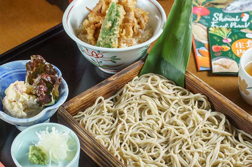 当店の蕎麦は地元の田麦俣や近隣地域の羽黒町で採れた「常陸秋そば(ひたちあきそば)」を使用。芳醇な香りとほんのりした甘みが特徴で、お店で提供する分だけを仕入れ石臼でゆっくりと挽き、清らかな月山の名水で手打ちでおつくりしています。蕎麦汁も北海道の昆布や様々な産地の節を使った蕎麦の主張に負けない自慢の汁。添加物など一切使用せず、大地の恵みをそのまま一杯の蕎麦に凝縮しております。皆様のご来店をお待ちしております。
