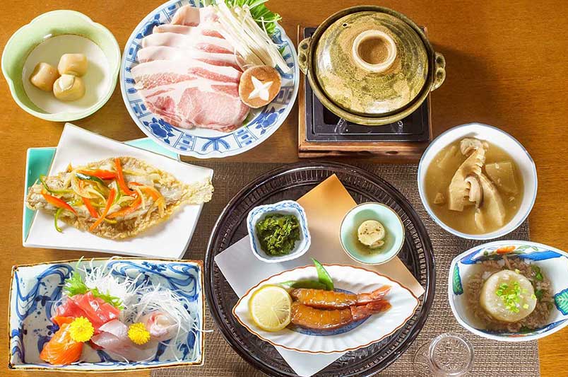 月山を望む自然に抱かれた絶好のロケーション。昔ながらの人情味溢れるおもてなしと山海の幸を使った滋味豊かなお料理が自慢の宿。当館を拠点に、イワナ渓流釣り・六十里越街道トレッキングなどを楽しまれるお客様も多く、連泊用のプランもございます。大自然の中に佇む和の宿で、日常を忘れ「素」の自分になり、ゆったりお過ごしくださいませ。